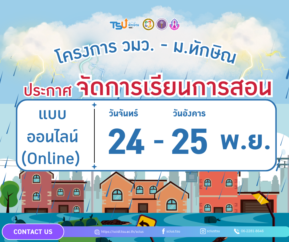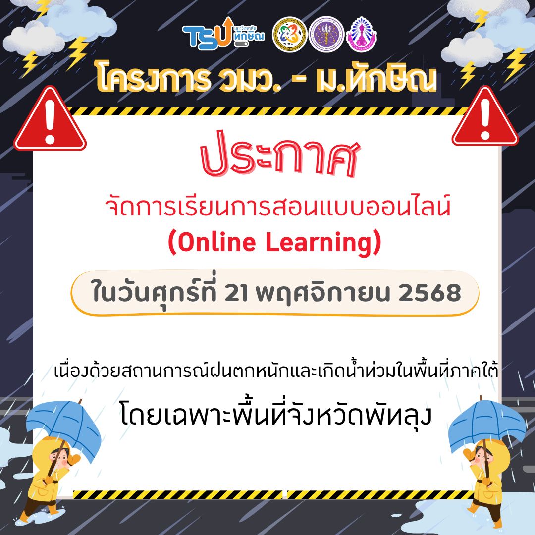 📢โครงการ วมว. - ม.ทักษิณ ประกาศจัดการเรียนการสอนแบบออนไลน์ (Online Learning) 📢 ⏰ระหว่างวันที่ 24 - 25 พฤศจิกายน 2568 ⏰