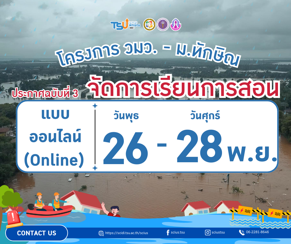 📢โครงการ วมว. - ม.ทักษิณ ประกาศจัดการเรียนการสอนแบบออนไลน์ (Online Learning) 📢 ⏰ระหว่างวันที่ 26 - 28 พฤศจิกายน 2568 ⏰