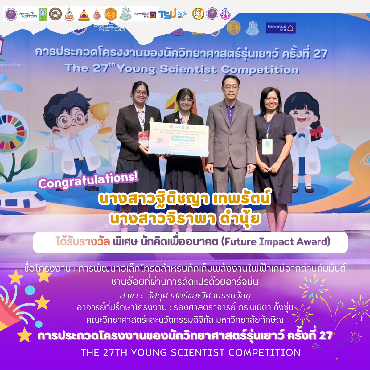 โครงการ วมว.-ม.ทักษิณ ขอแสดงความยินดีกับนักเรียนคว้า 2 รางวัลระดับชาติ จากการประกวดโครงงานนักวิทยาศาสตร์รุ่นเยาว์ ครั้งที่ 25 รอบชิงชนะเลิศ