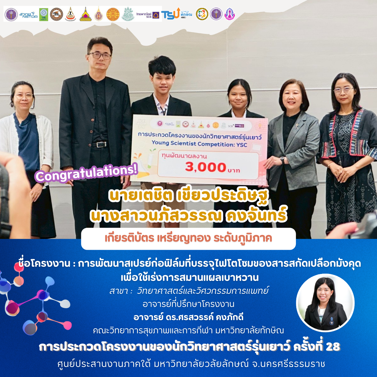 📢โครงการ วมว. - ม.ทักษิณ 🎉 ขอแสดงความยินดีกับนักเรียนที่ได้รับรางวัล 🏆“ชนะเลิศระดับภูมิภาค (ภาคใต้)” 💡การประกวดโครงงานนักวิทยาศาสตร์รุ่นเยาว์ ครั้งที่ 28 (YSC 2026)