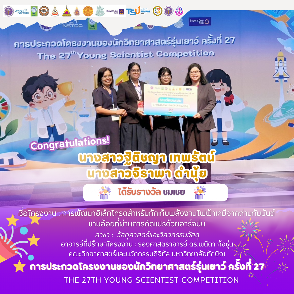 โครงการ วมว.-ม.ทักษิณ ขอแสดงความยินดีกับนักเรียนคว้า 2 รางวัลระดับชาติ จากการประกวดโครงงานนักวิทยาศาสตร์รุ่นเยาว์ ครั้งที่ 25 รอบชิงชนะเลิศ