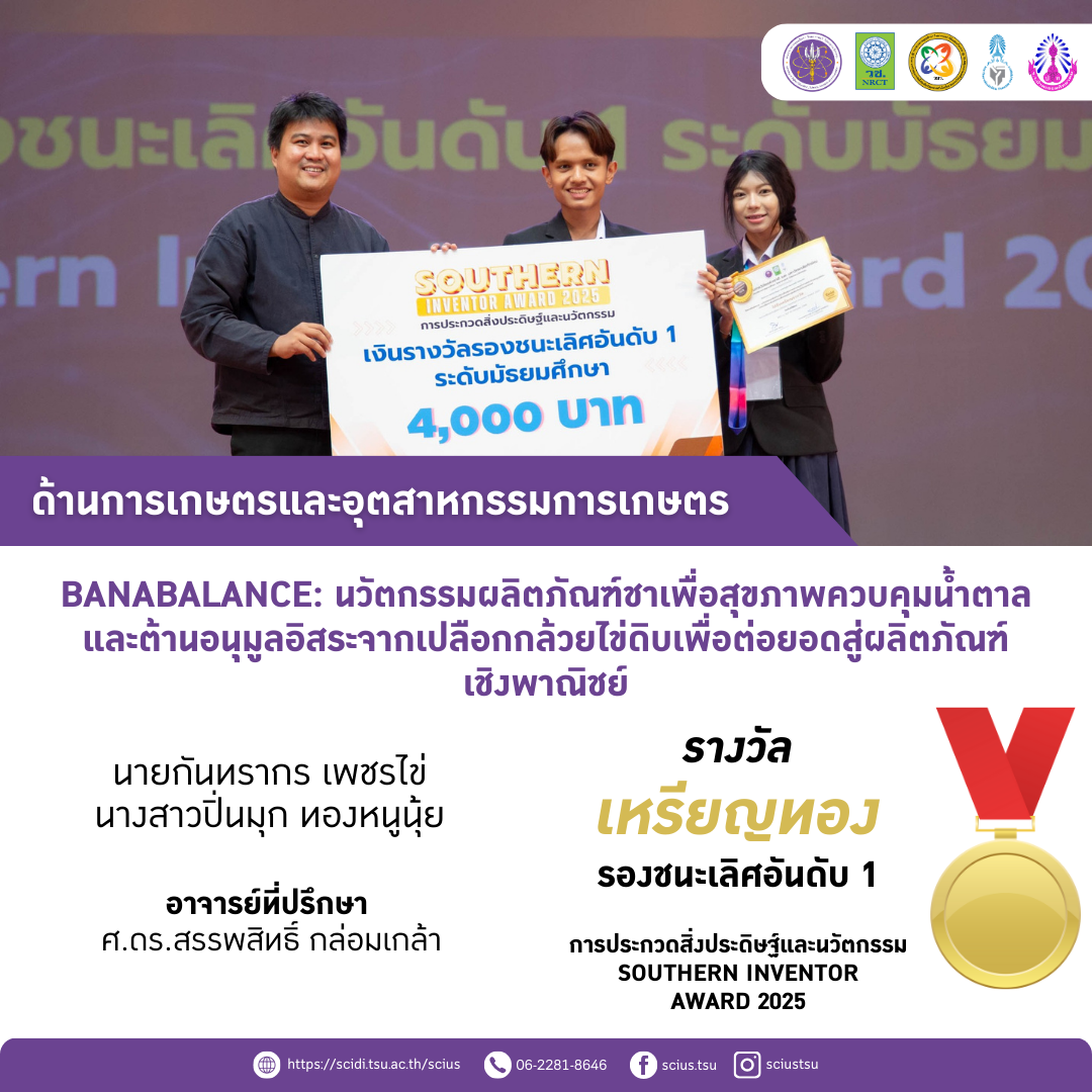 🔸BanaBalance:นวัตกรรมผลิตภัณฑ์ชาเพื่อสุขภาพควบคุมน้ำตาลและต้านอนุมูลอิสระจากเปลือกกล้วยไข่ดิบเพื่อต่อยอดสู่ผลิตภัณฑ์เชิงพาณิชย์