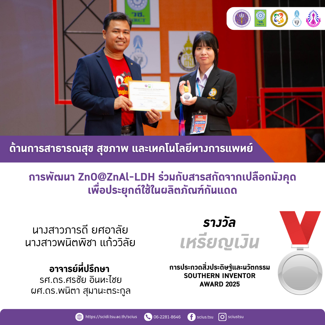 🔸การพัฒนา ZnO@ZnAl-LDH ร่วมกับสารสกัดจากเปลือกมังคุดเพื่อประยุกต์ใช้ในผลิตภัณฑ์กันแดด